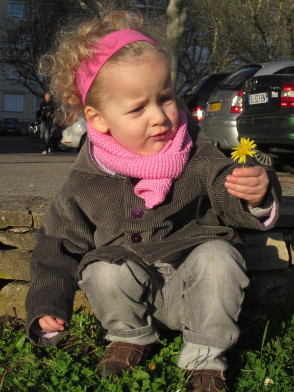 Comme Popi, elle a appris le nom et la couleur des fleurs du printemps !